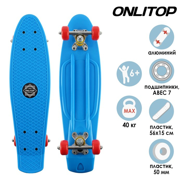 Скейтборд ONLITOP, 56x15 см, колёса PVC 50 мм, ABEC 7, алюминиевая рама, цвет МИКС