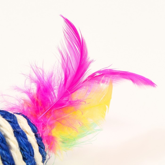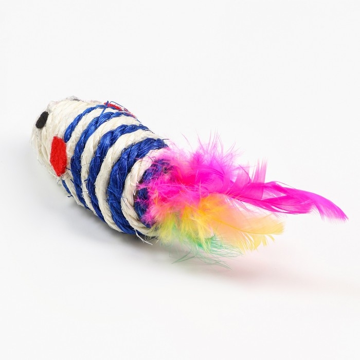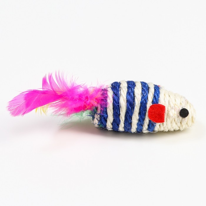 Мышь-погремушка сизалевая, 7 см, синяя/белая