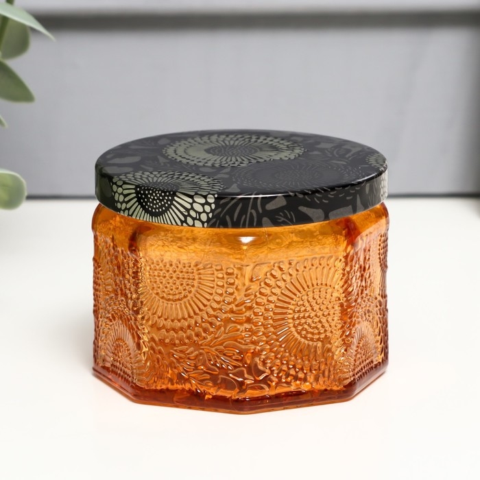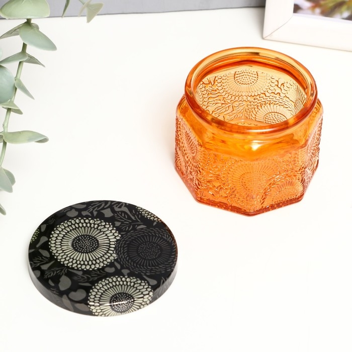 Банка для свечей стекло с крышкой "Цветочная" оранж, многогранник 5х7х7 см