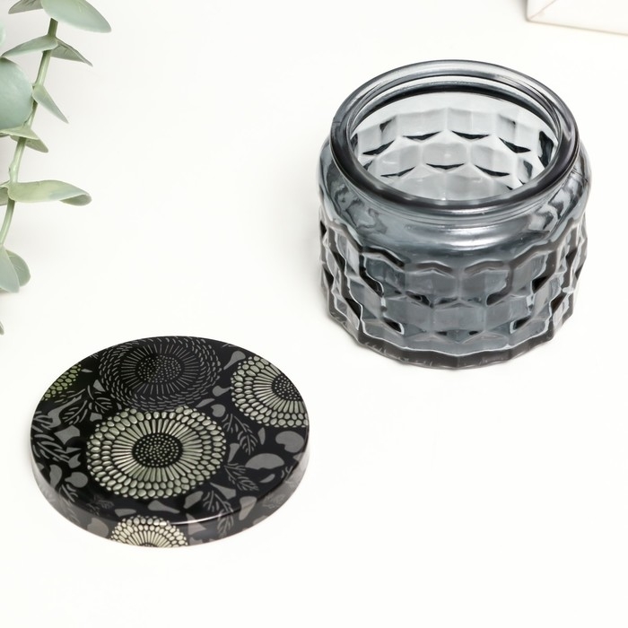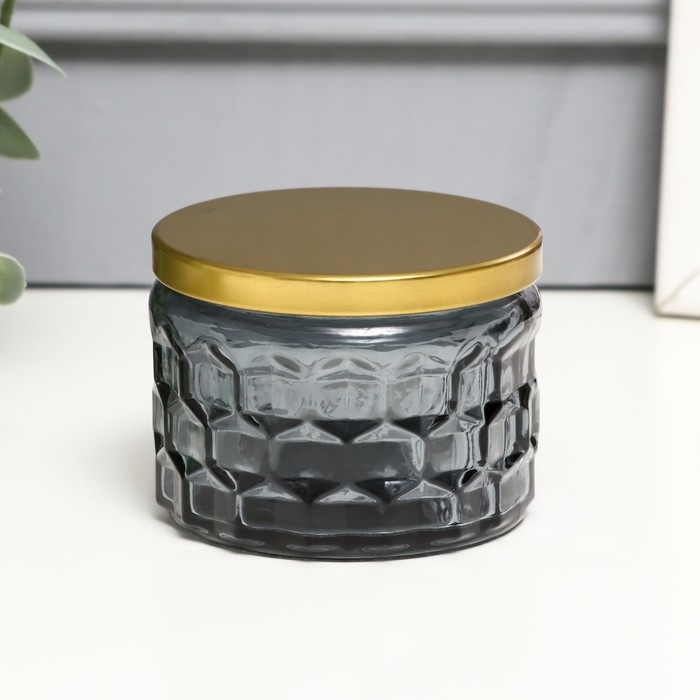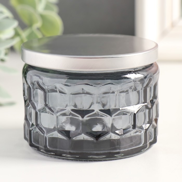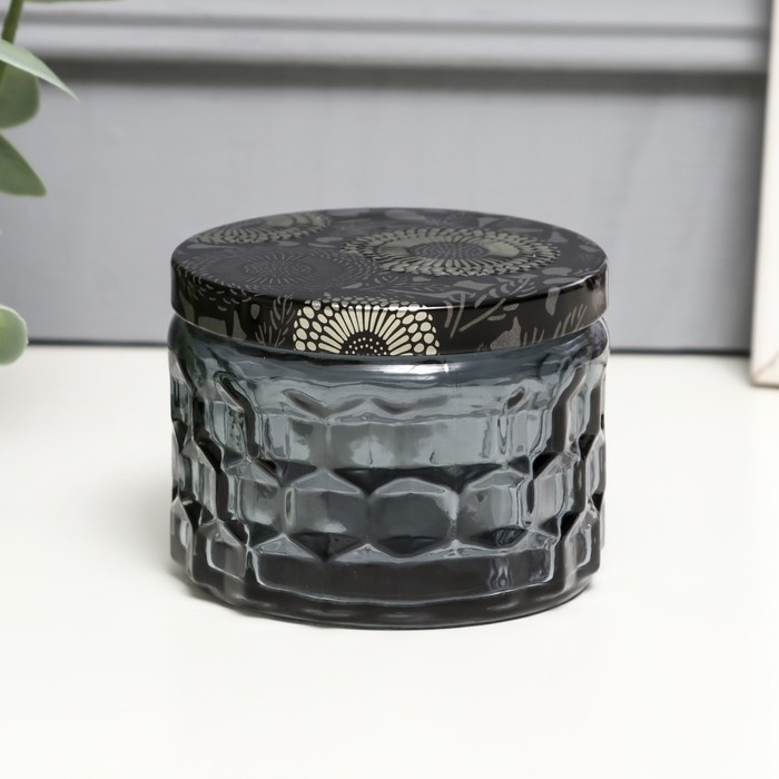 Банка для свечей стекло с крышкой "Соты" серая 5х7х7 см, МИКС