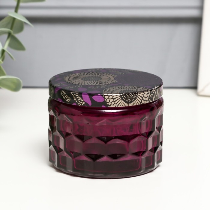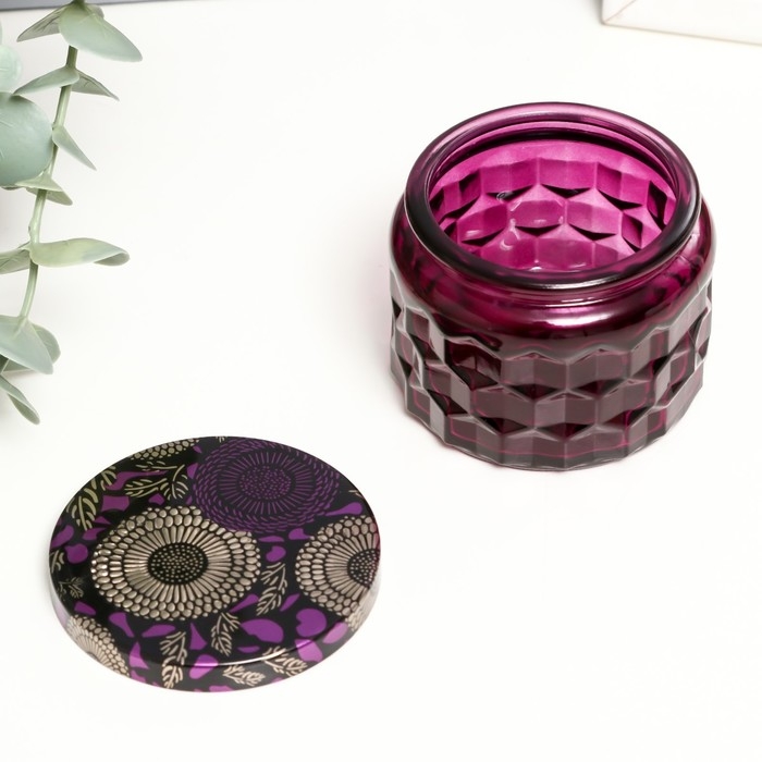 Банка для свечей стекло с крышкой "Соты" фиолет 5х7х7 см, МИКС