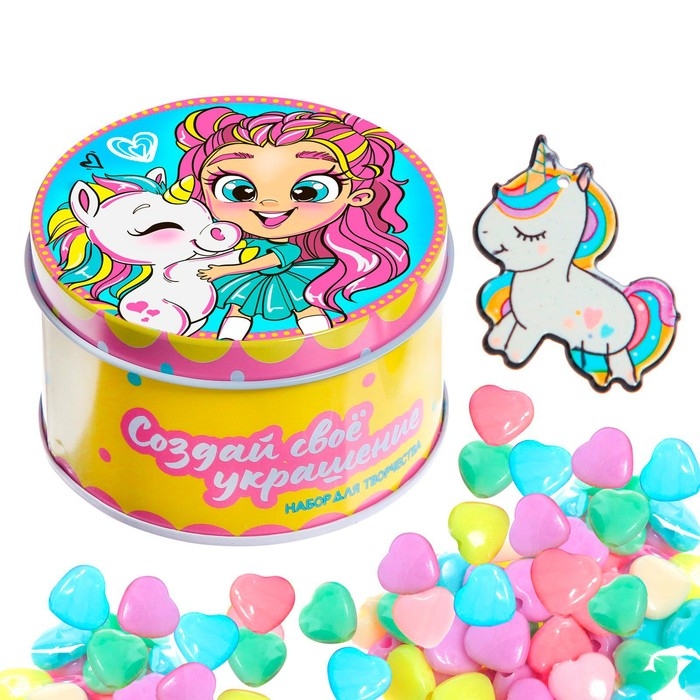 Набор для творчества «Создай своё украшение: Единорог», в металлической банке
