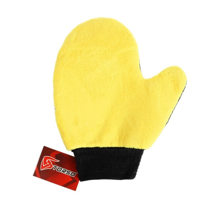 Варежка для мытья автомобиля TORSO, 20×24 см, двухсторонняя, серо-желтая