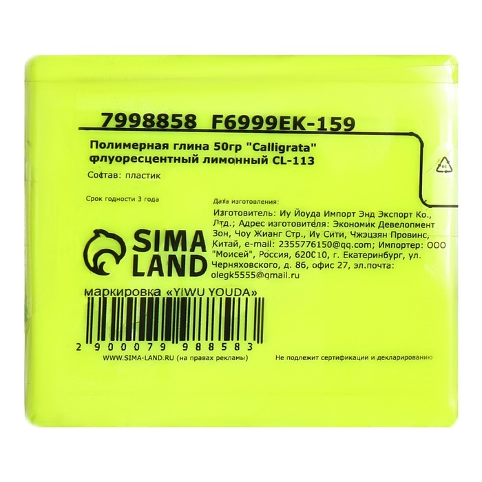 Полимерная глина 50 гр, неоновая, лимонная