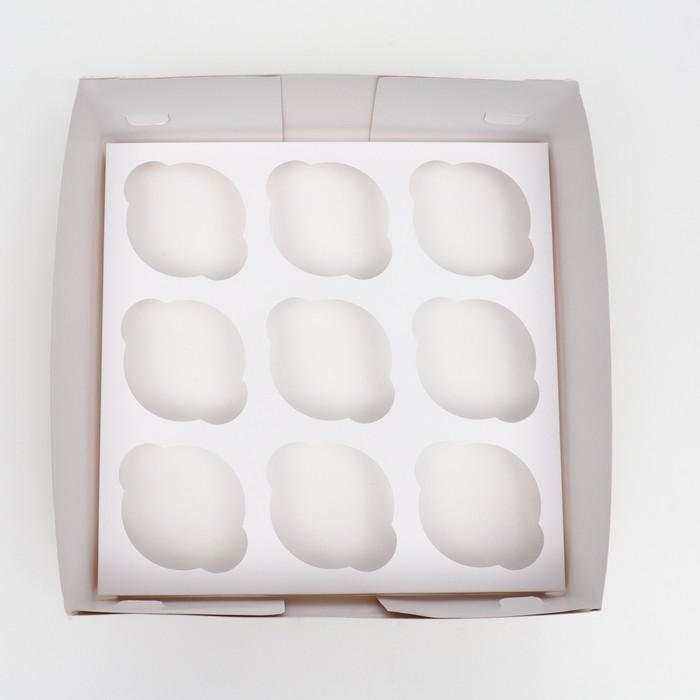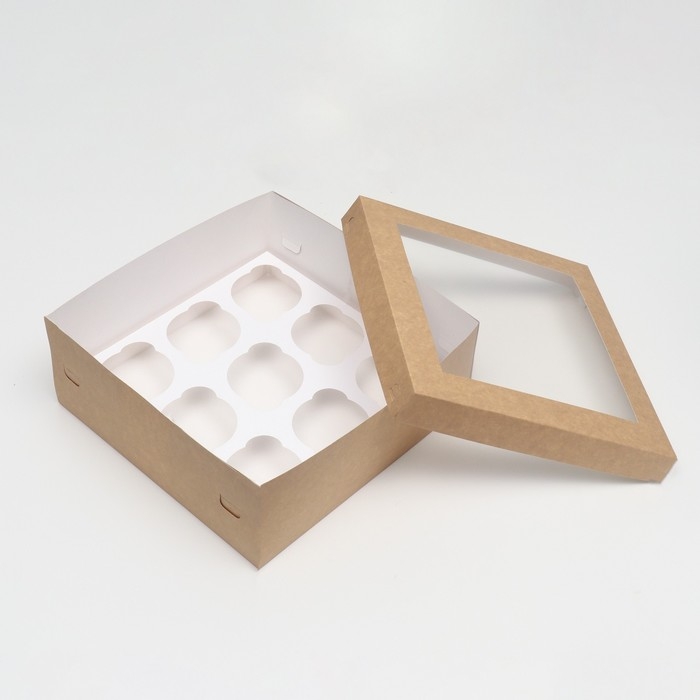 Коробка для 9 капкейков с окном, крафт,, 25 х 25 х 10 см