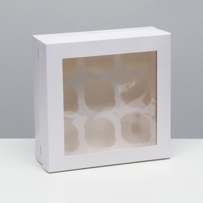 Коробка для 9 капкейков с окном, 25 х 25 х 10 см