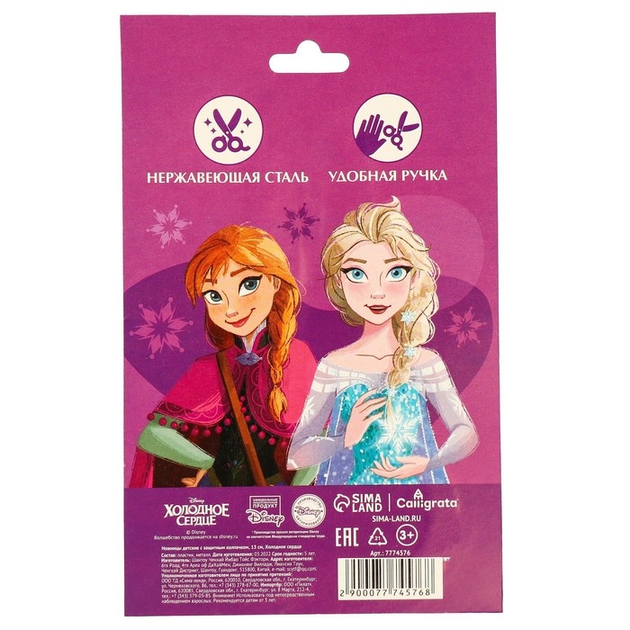 Ножницы детские 13 см, с защитным колпачком, Холодное сердце