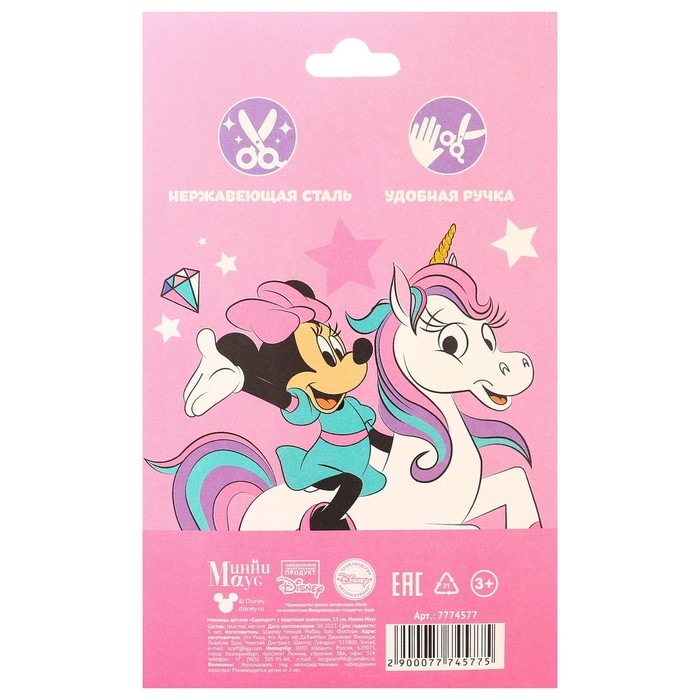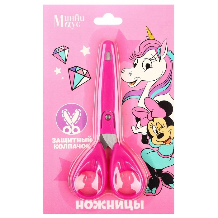 Ножницы детские 13 см, с защитным колпачком, "Единорог", Минни Маус