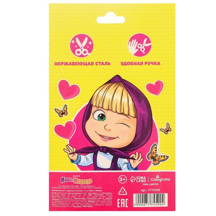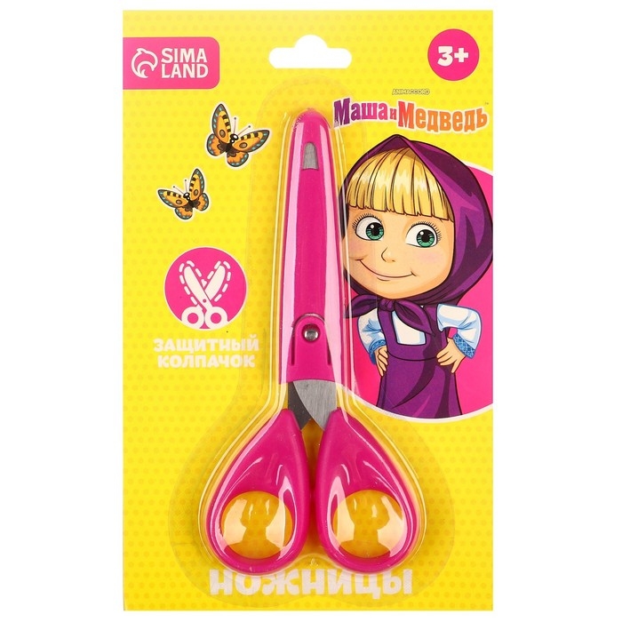 Ножницы детские 13 см, с защитным колпачком, Маша и Медведь