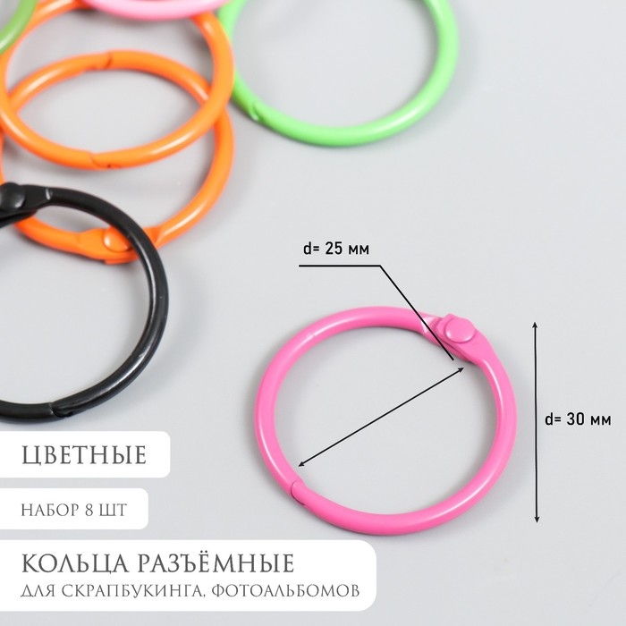 Кольцо для творчества (для фотоальбомов) "Цвет" МИКС внутр. d= 2,5 см внешн. d=3 см набор 8 шт 91494