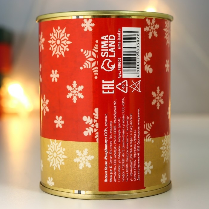 Носки в банке "Рождённому в СССР" (внутри носки мужские, цвет чёрный)