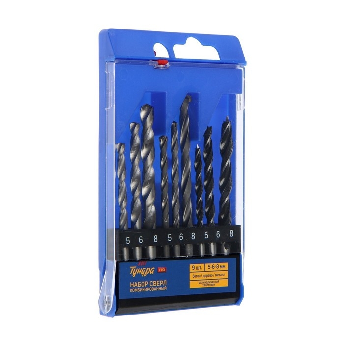 Набор сверл комбинированный ТУНДРА ВДОМ, цилиндрический хвостовик, 5-6-8 мм, 9 шт.