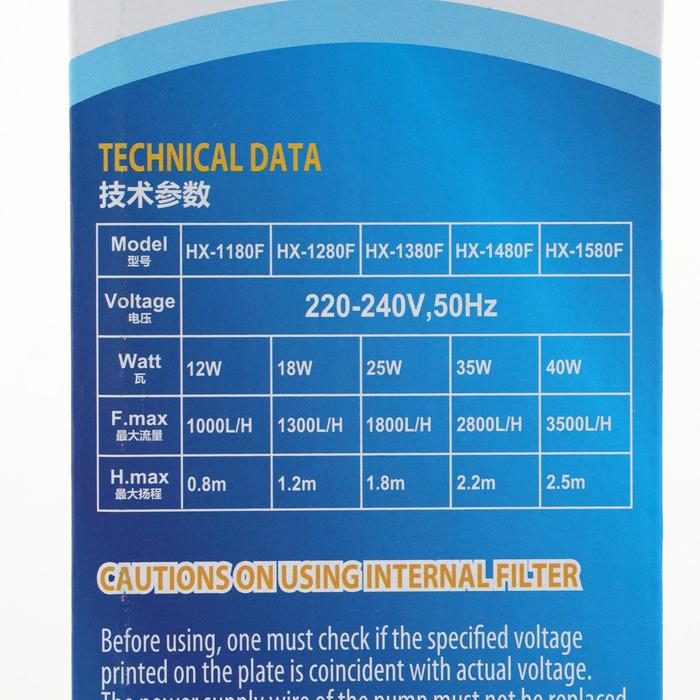 Фильтр внутренний Sea Star HX-1380F2, 1800 л/ч, 25 Вт, высота подъема воды 1,8 м