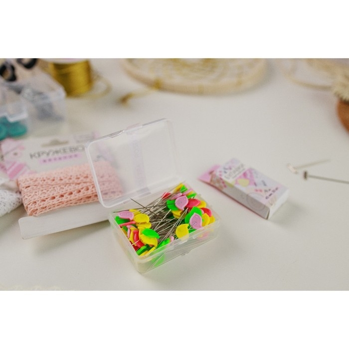 Булавки портновские Premium, стеклянная головка, 30 мм, 100 шт, цвет разноцветный