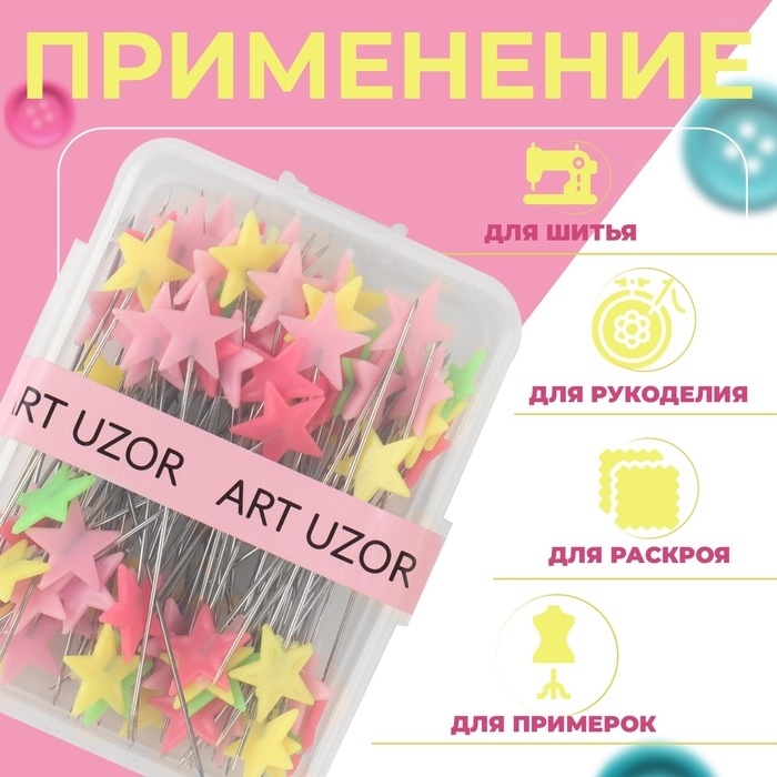 Портновские булавки с разноцветным верхом станут помощниками в процессе раскройки ткани и примерки одежды. Удобные булавки помогут исправить небольшие изъяны или придадут изделию новую форму.