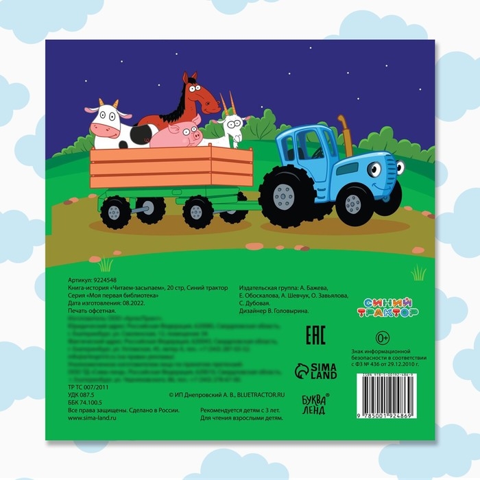 Книга с историей «Читаем-засыпаем», 20 стр., 19 × 19 см, Синий трактор