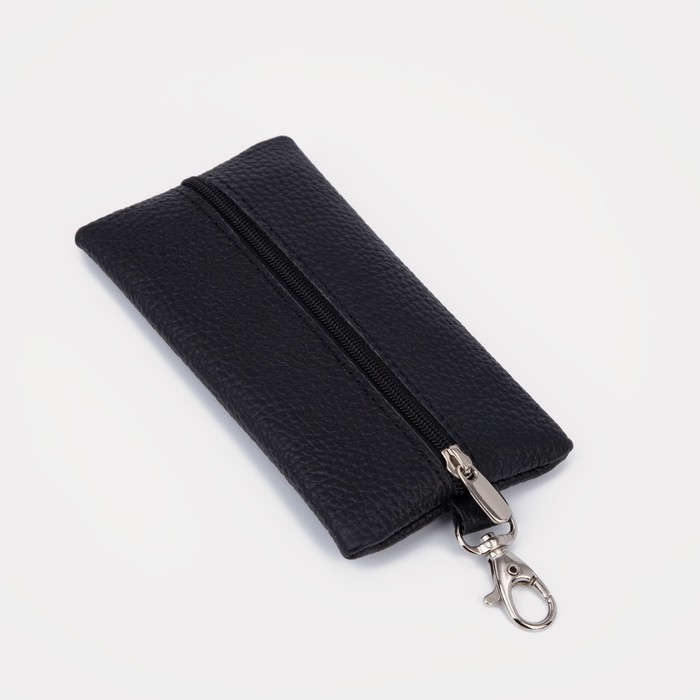 Ключница на молнии, длина 15 см, кольцо, карабин, цвет чёрный