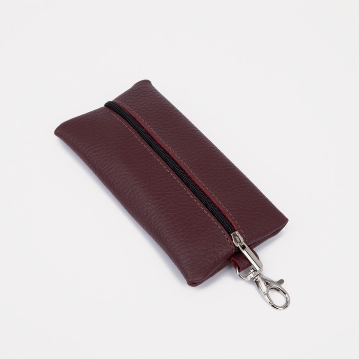 Ключница на молнии, длина 15 см, кольцо, карабин, цвет бордовый