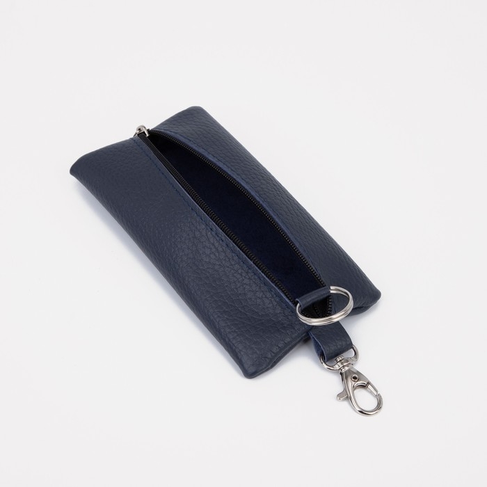 Ключница на молнии, длина 15 см, кольцо, карабин, цвет синий