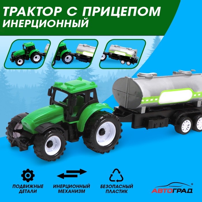 Набор инерционных тракторов «Фермер» с прицепом, 3 штуки