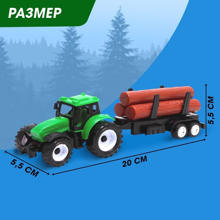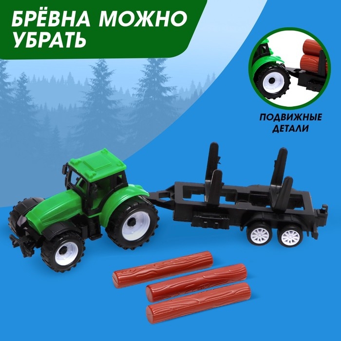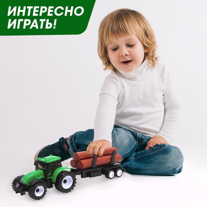 Набор инерционных тракторов «Фермер» с прицепом, 3 штуки