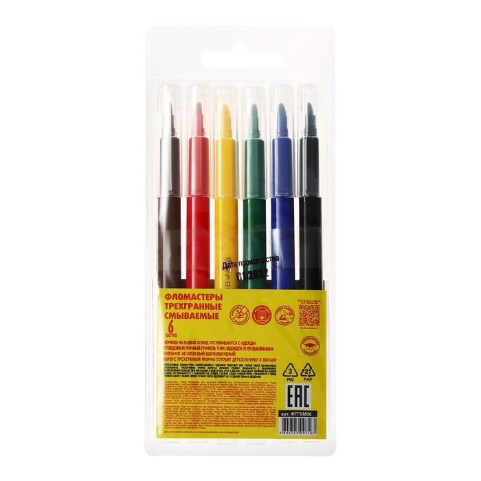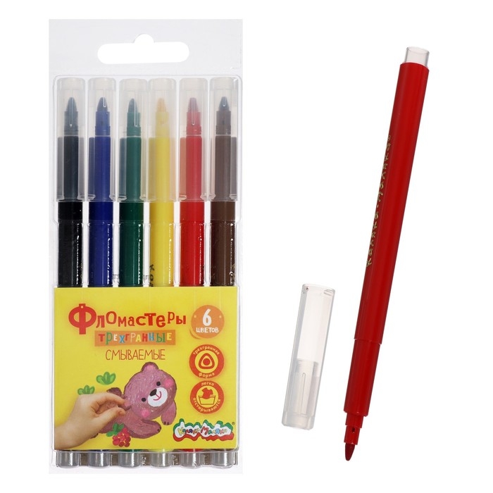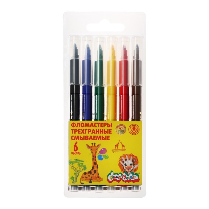 Фломастеры 6 цветов "Каляка-Маляка", трёхгранные, легкосмываемые, круглый корпус ФТГКМ06