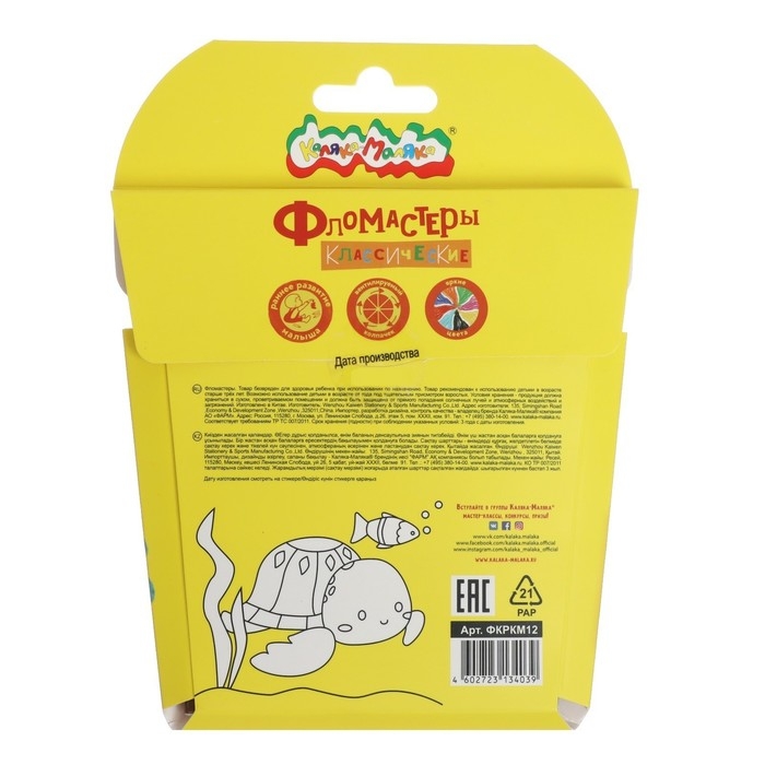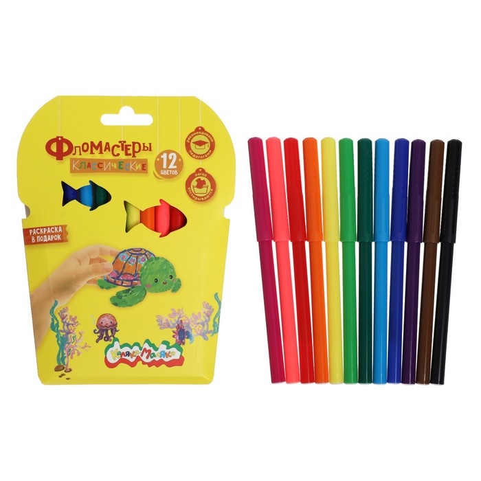Фломастеры 12 цветов "Каляка-Маляка", классические, легкосмываемые, круглый корпус ФКРКМ12