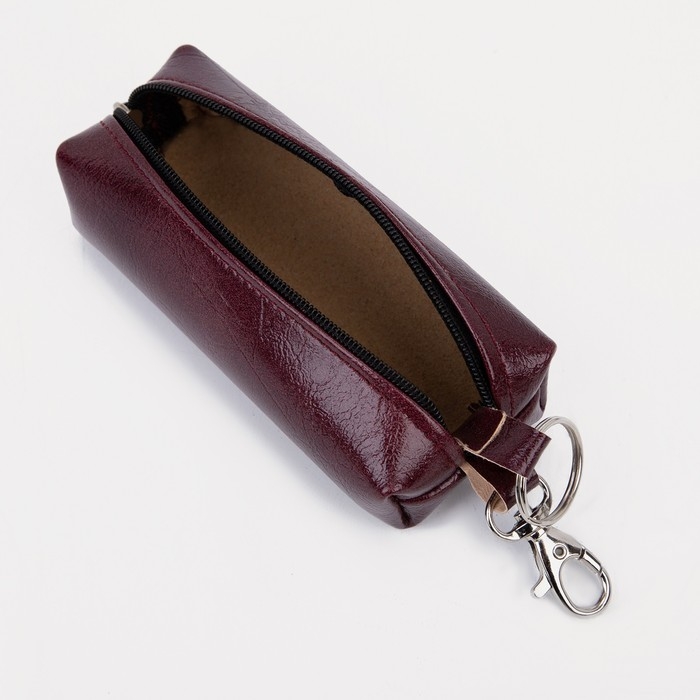 Ключница на молнии, длина 13 см, кольцо, карабин, цвет бордовый