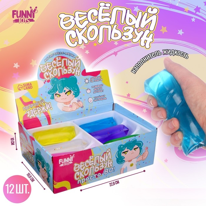 Антистресс сквиш мялка скользун «Попробуй удержи» аниме, цвета МИКС, с жидкостью, в шоубоксе