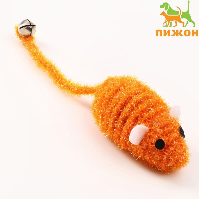 Мышь-погремушка 7 см, оранжевая