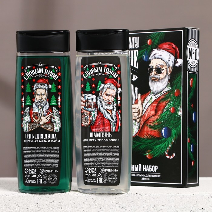 Подарочный набор косметики новогодний «Идеальному мужчине», гель для душа и шампунь для волос, 2 х 250 мл, Новый Год
