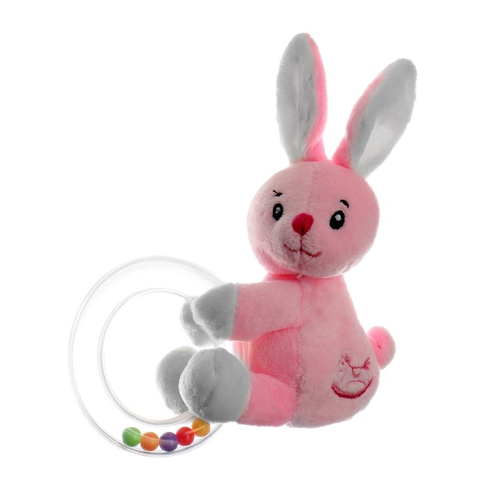 - При взаимодействии с игрушкой ребёнок услышит забавные звуки: в лапках зайчика находится элемент с гремящими при движении шариками.