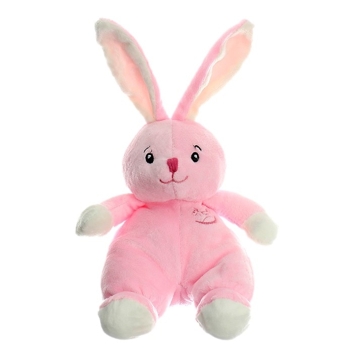 - При взаимодействии с игрушкой ребёнок услышит забавные звуки: внутри зайчика находится элемент с гремящими при движении шариками.