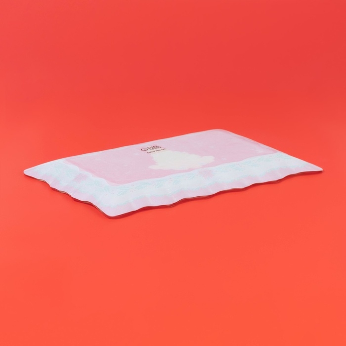 Блюдо стеклянное прямоугольное Доляна «Счастливого Нового года», 29,5×19 см, цвет красный