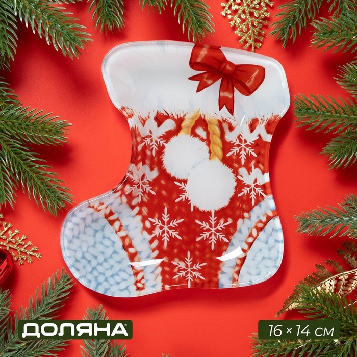 Блюдо стеклянное сервировочное Доляна «Сапожок. Бубенчики», 16×14 см
