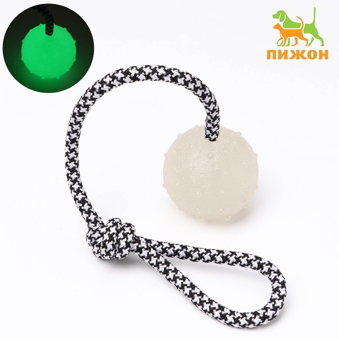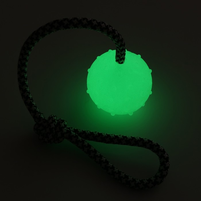 Игрушка для собак "Луна", светящаяся в темноте, на канате, 6 см