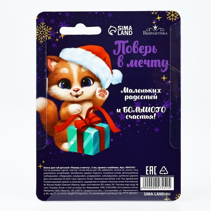 Средство насыщает кожу необходимыми питательными компонентами, придаёт губам сияние и улучшает их внешний вид. А новогодний декор внутри тубы поднимает настроение. Такой блеск станет отличным подарком для девочки на Новый год.
