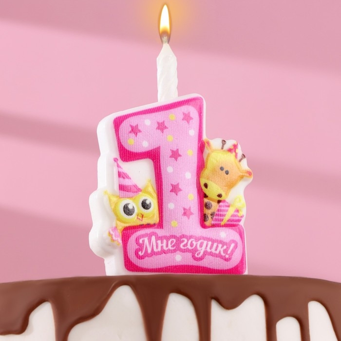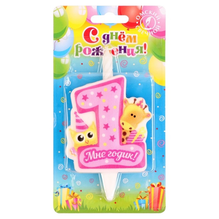 Свеча в торт "Мне годик!" с жирафом и совой, 9,7 см, 12 мин, 40 г
