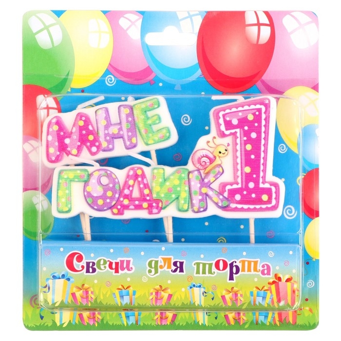 Свеча в торт на шпажке для девочек "Мне годик", 7,7 см, 12 мин, 65 г