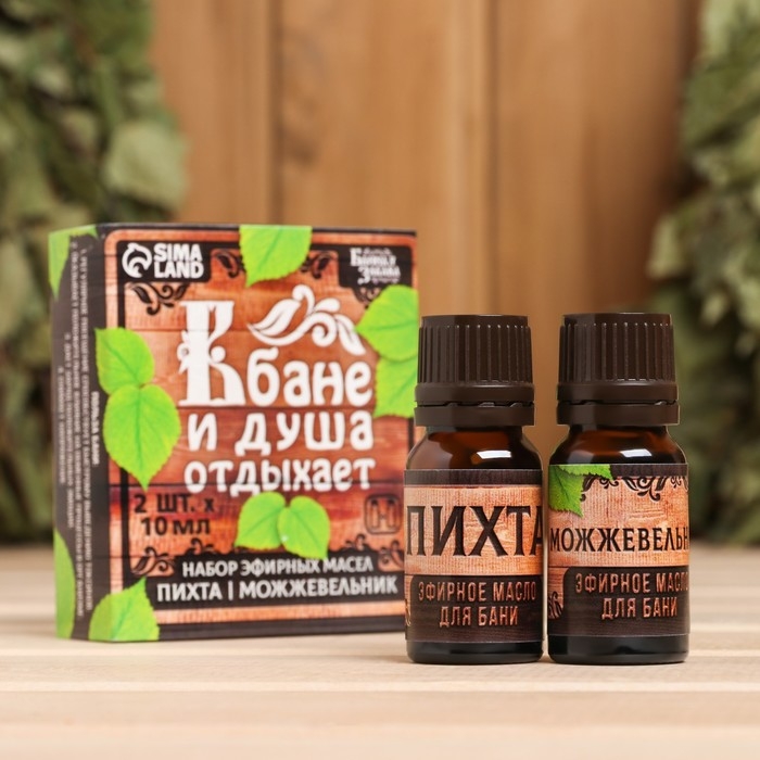 Набор 2 эфирных масла 10 мл "В бане и душа отдыхает" пихта, можжевельник
