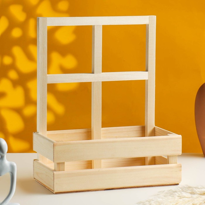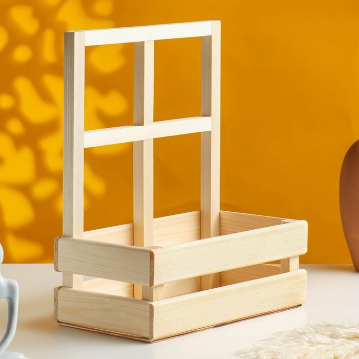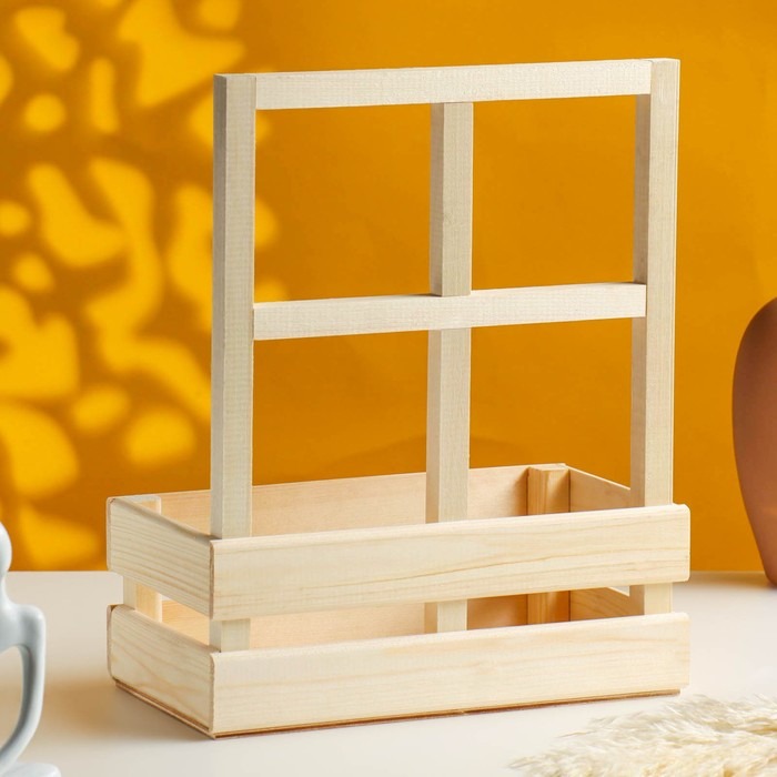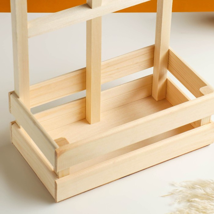 Кашпо деревянное 24,5×13,5×9/30 см "Букет под окном", с ручкой, натуральный