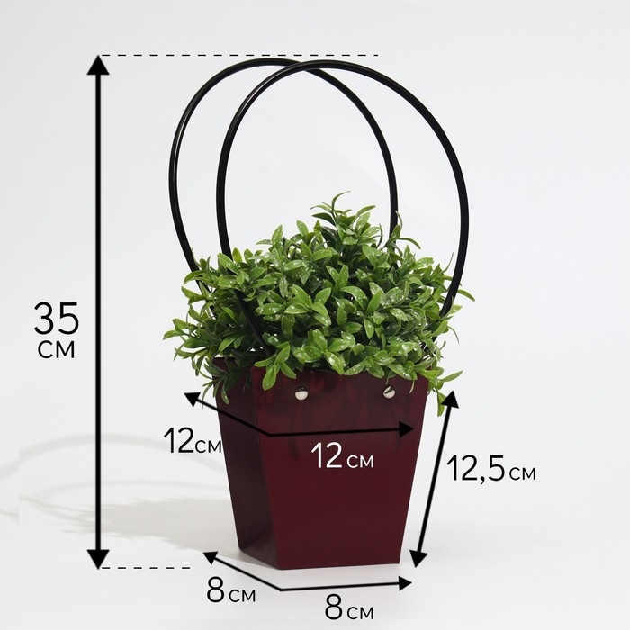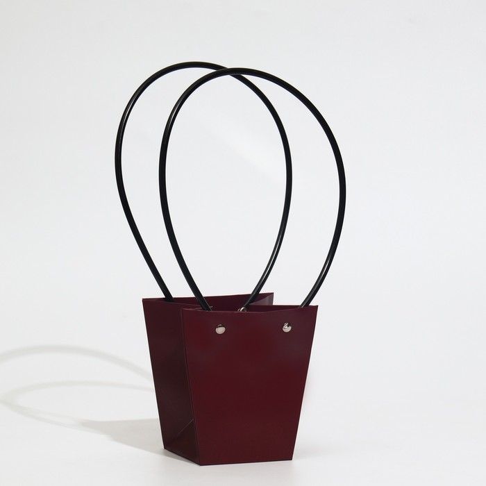 Сумка для цветов бордовая влагостойкая, 12x12-8 x 8-12.5 см