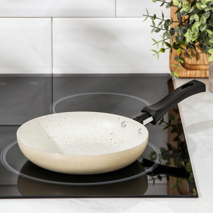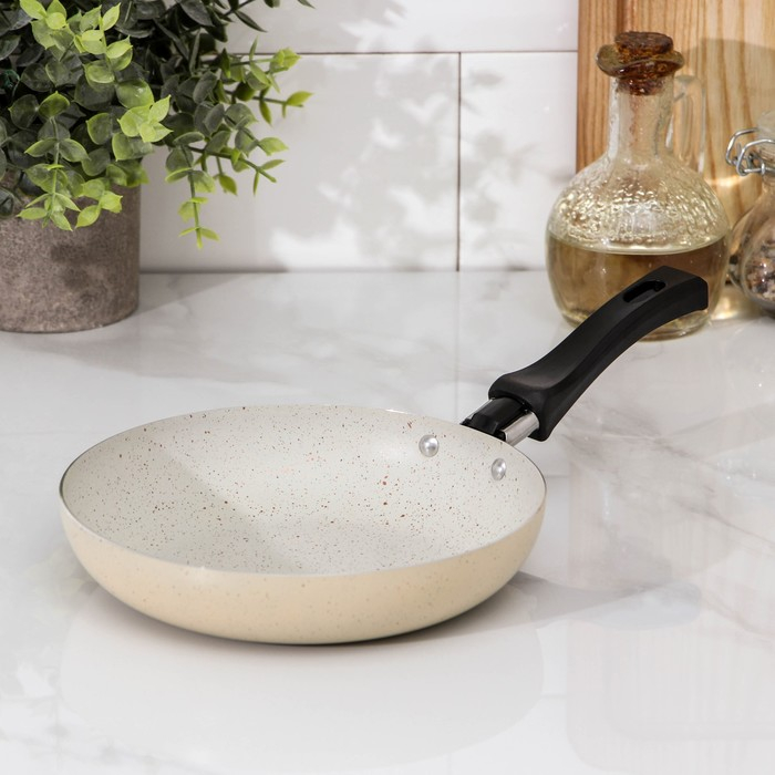 Сковорода «Стоун», d=17 см, пластиковая ручка, антипригарное покрытие, цвет бежевый
