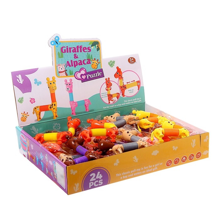 Развивающая игрушка «Жираф» станет лучшим другом для вашего малыша. Шею и туловище жирафа можно растягивать и крутить! Яркие детали и разнообразные элементы привлекут внимание ребёнка. В процессе игры его внимание и усидчивость улучшатся.