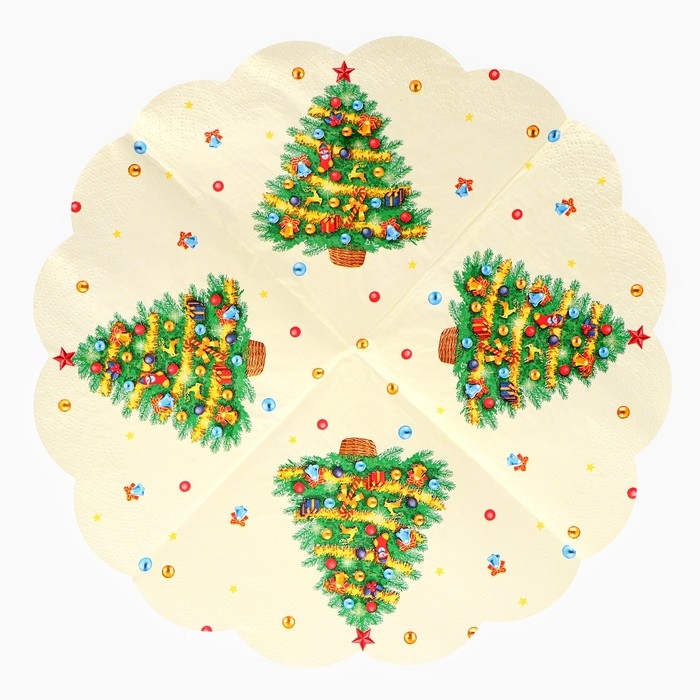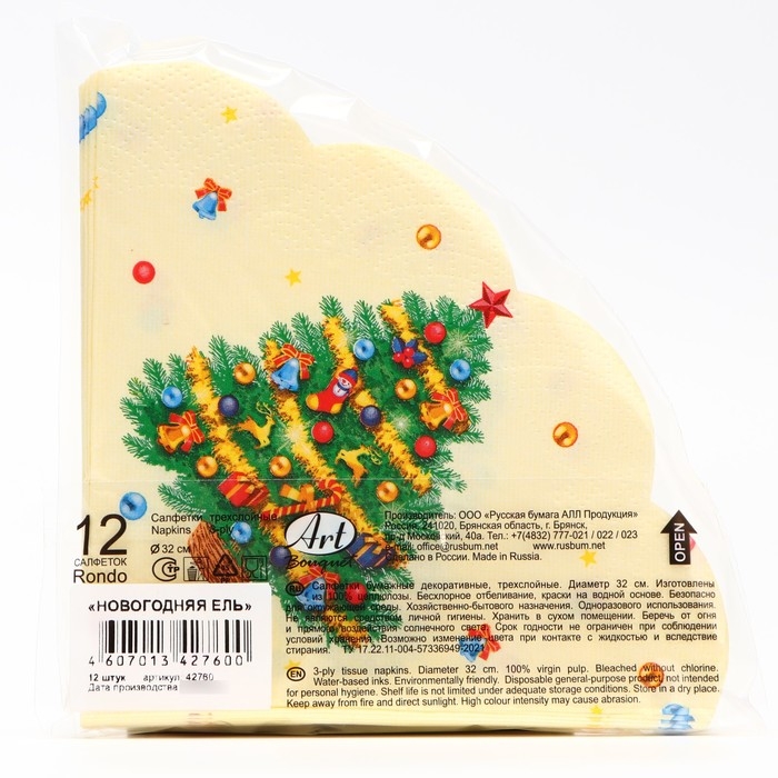 Новый год. Салфетки бумажные Art Bouquet Rondo "Новогодняя ель", 3 слоя, d 32, 12 шт