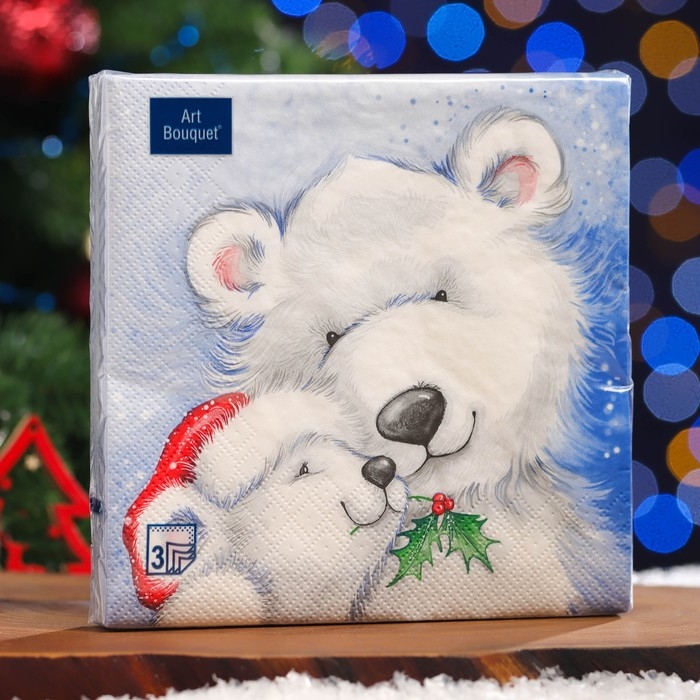Новый год. Салфетки бумажные Art Bouquet "Белые медведи", 3 слоя,33x33, 20 листов