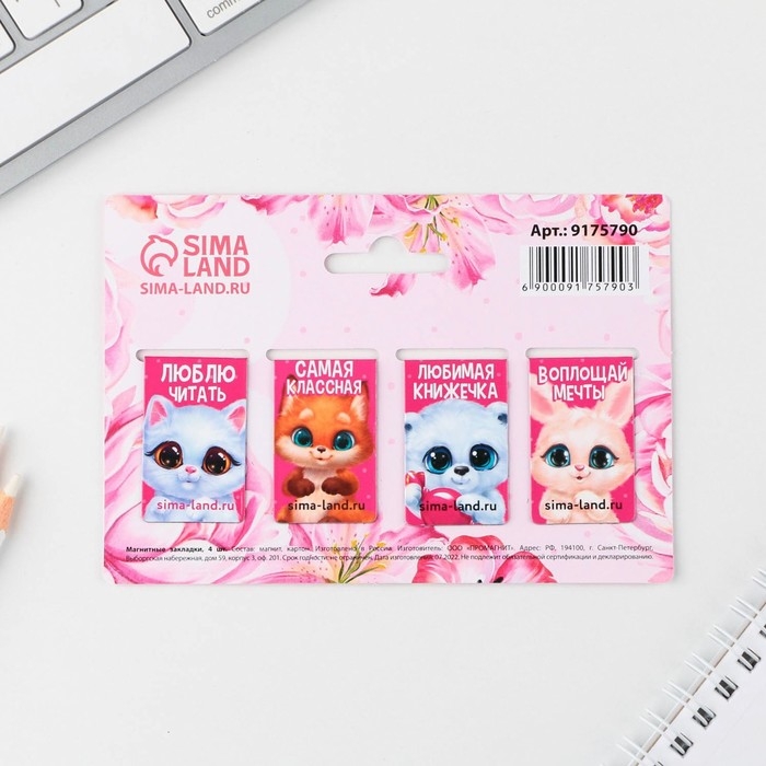 Набор магнитных закладок для книг Calligrata 6 штук, "Кошки", МИКС