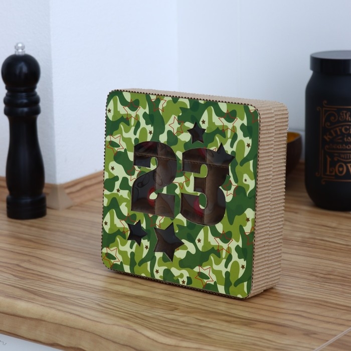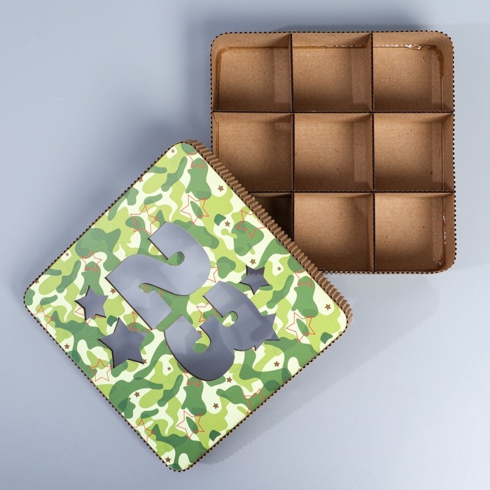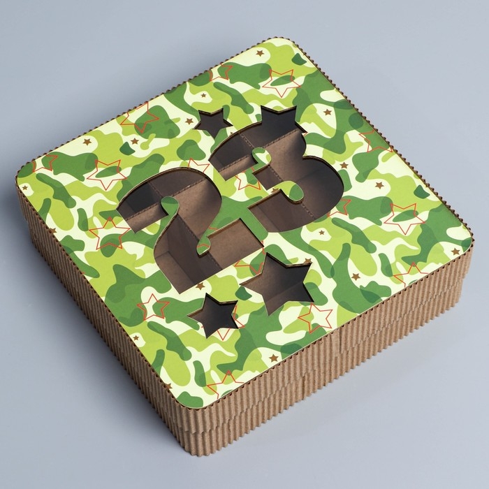 Коробка подарочная, кондитерская упаковка «23 февраля», 18 х 18 х 5 см