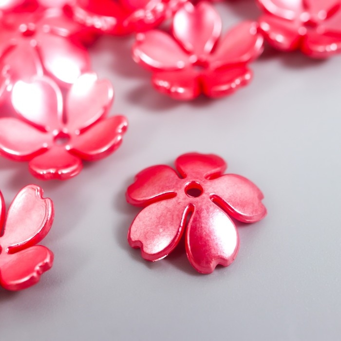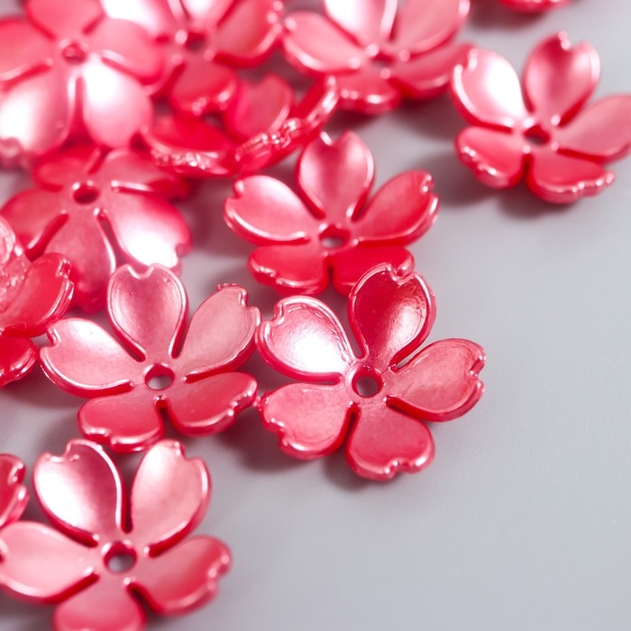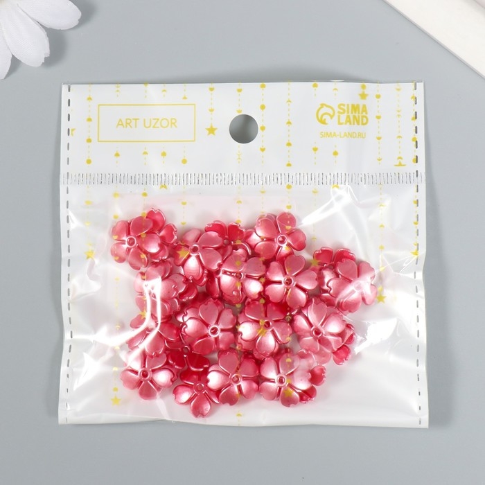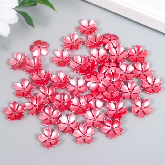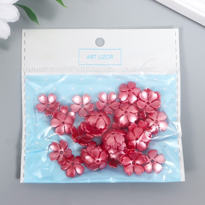 Бусины для творчества пластик "Цветочек жемчужный" набор 40 шт красный 1,5х1,5 см