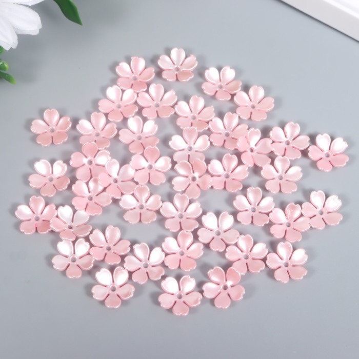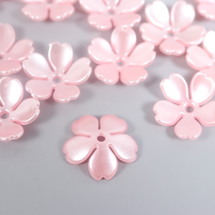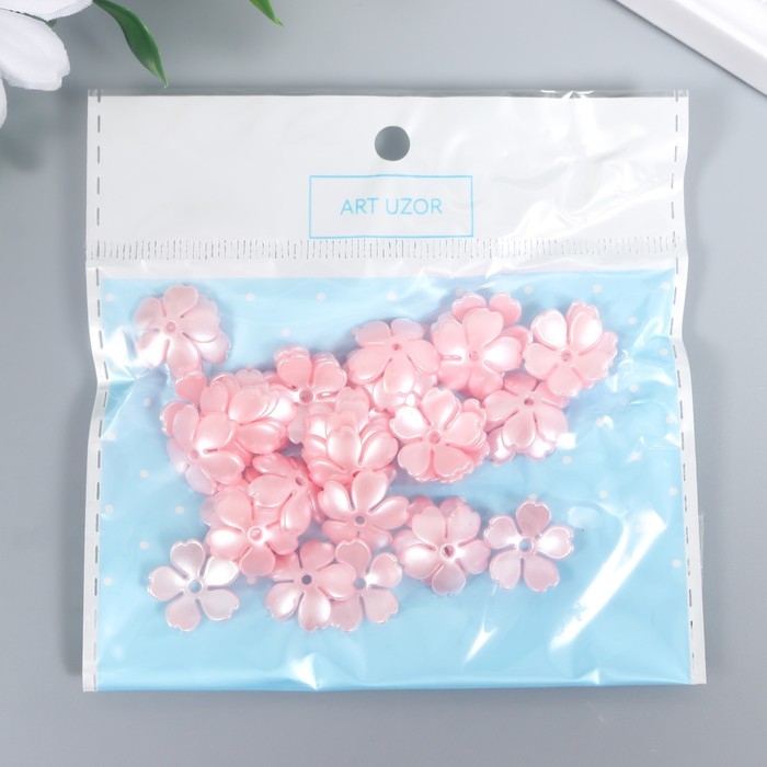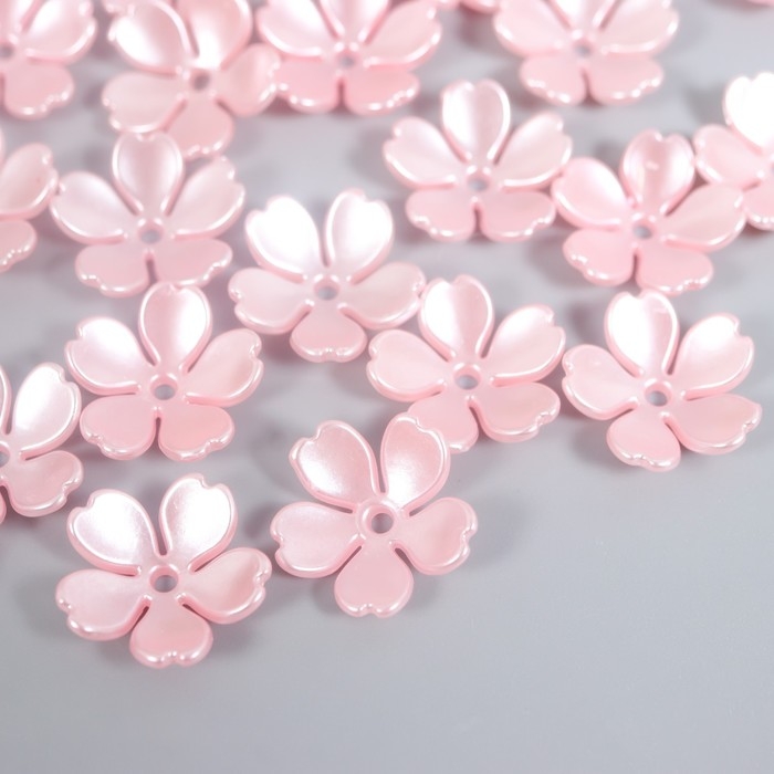 Бусины для творчества пластик "Цветочек жемчужный" набор 40 шт розовый 1,5х1,5 см